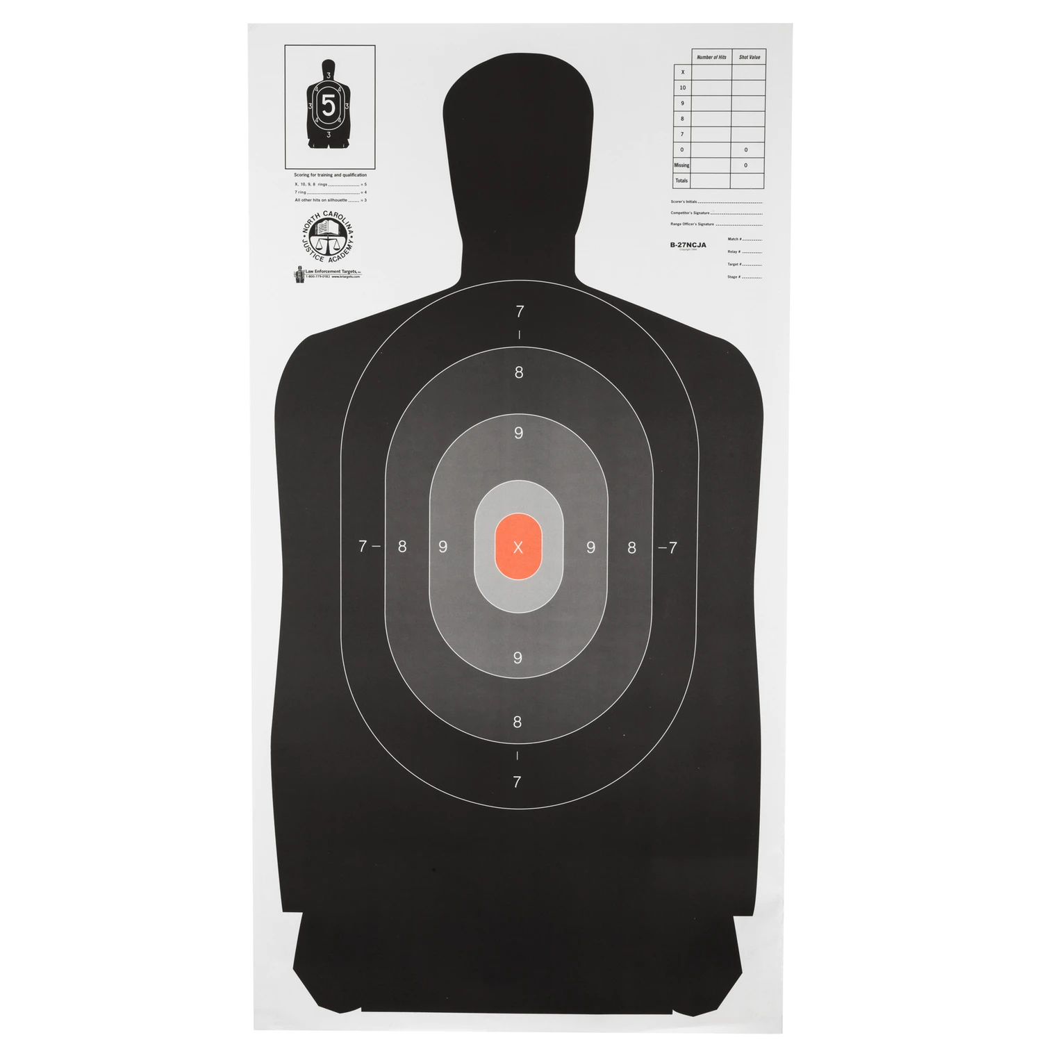 Action Target B-27 North Carolina Criminal Justice Academy Target, Shaded Scoring Rings Starting Outside And Going Dark To Light With A Bright Orange Center, 24″x45″, 100 Per Box B-27NCJA-100