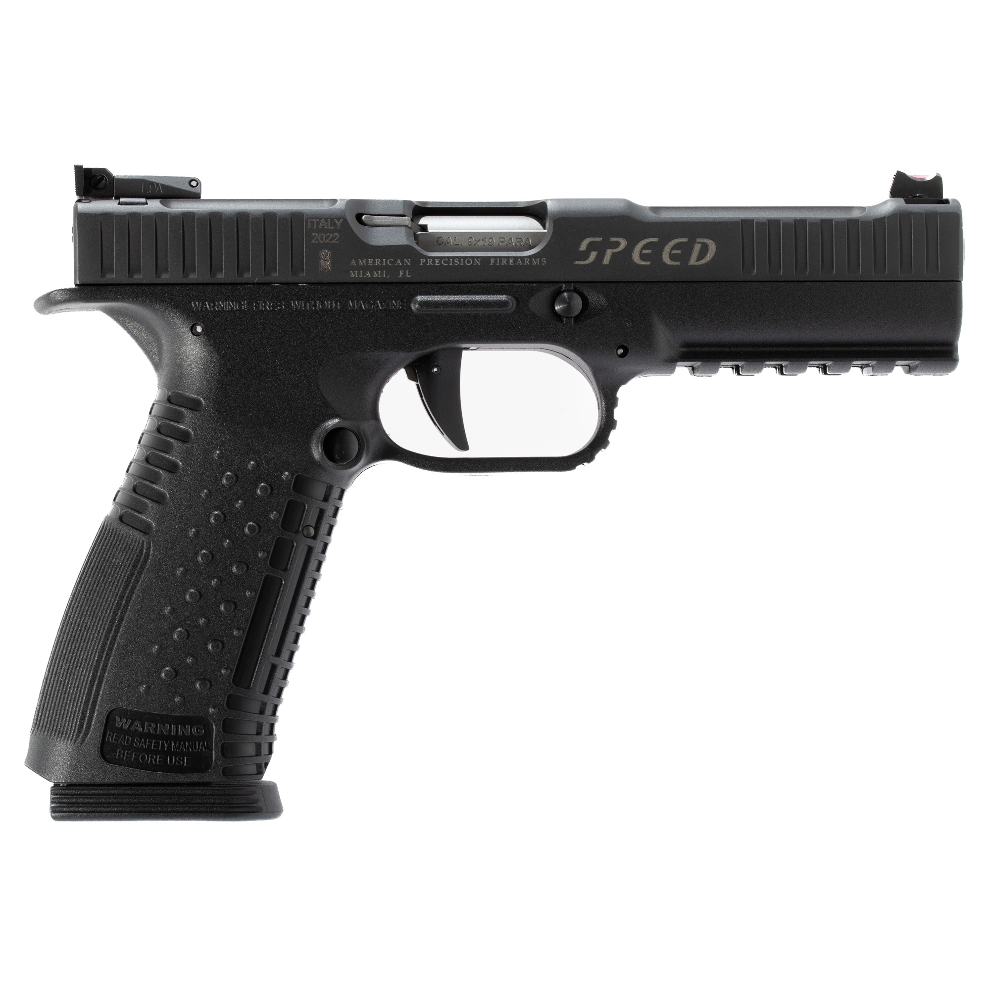 American Precision Firearms Strike One, Speed, Semi-automatic, Striker Fired, Full Size, Polymer Frame Pistol, 9MM, 5″ Barrel, No Manual Safety, Matte Finish, Black, Fiber Optic Front Sight with Adjustable Rear, 17 Rounds, 2 Magazines AFS1S-9-BK-17