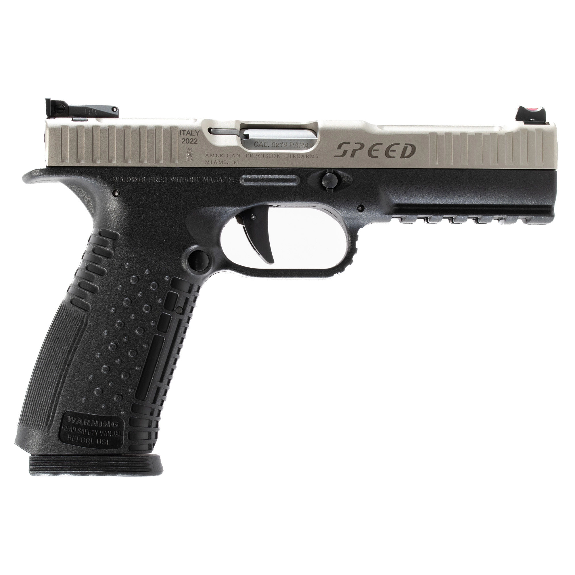 American Precision Firearms Strike One, Speed, Semi-automatic, Striker Fired, Full Size, Polymer Frame Pistol, 9MM, 5″ Barrel, No Manual Safety, Matte Finish, Black Frame and Stainless Steel Slide, Fiber Optic Front Sight with Adjustable Rear, 17 Rounds, 2 Magazines AFS1S-9-DT-17