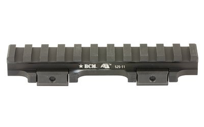 A/T Optic Riser 525-11 is approximately 4-1/2″ long and is intended to be used with an optic backed up by a magnifier or NVG or thermal depending on the number of recoil slots the mount takes up. This riser has 11 recoil slots (12 lugs). Optimized for close combat ranges, the BCM A/T Riser creates a platform that raises the centerline of attached optics and magnifiers by 0.525 inches which raises typical lower 1/3 optics to approximately 2.16 inches height and absolute co-witness optics to approximately 1.93 inches height. This additional height enhances the trained end user’s situational awareness, and further, makes it possible for them to take better aimed shots if they are using the optic in conjunction with night vision or other PPE systems.