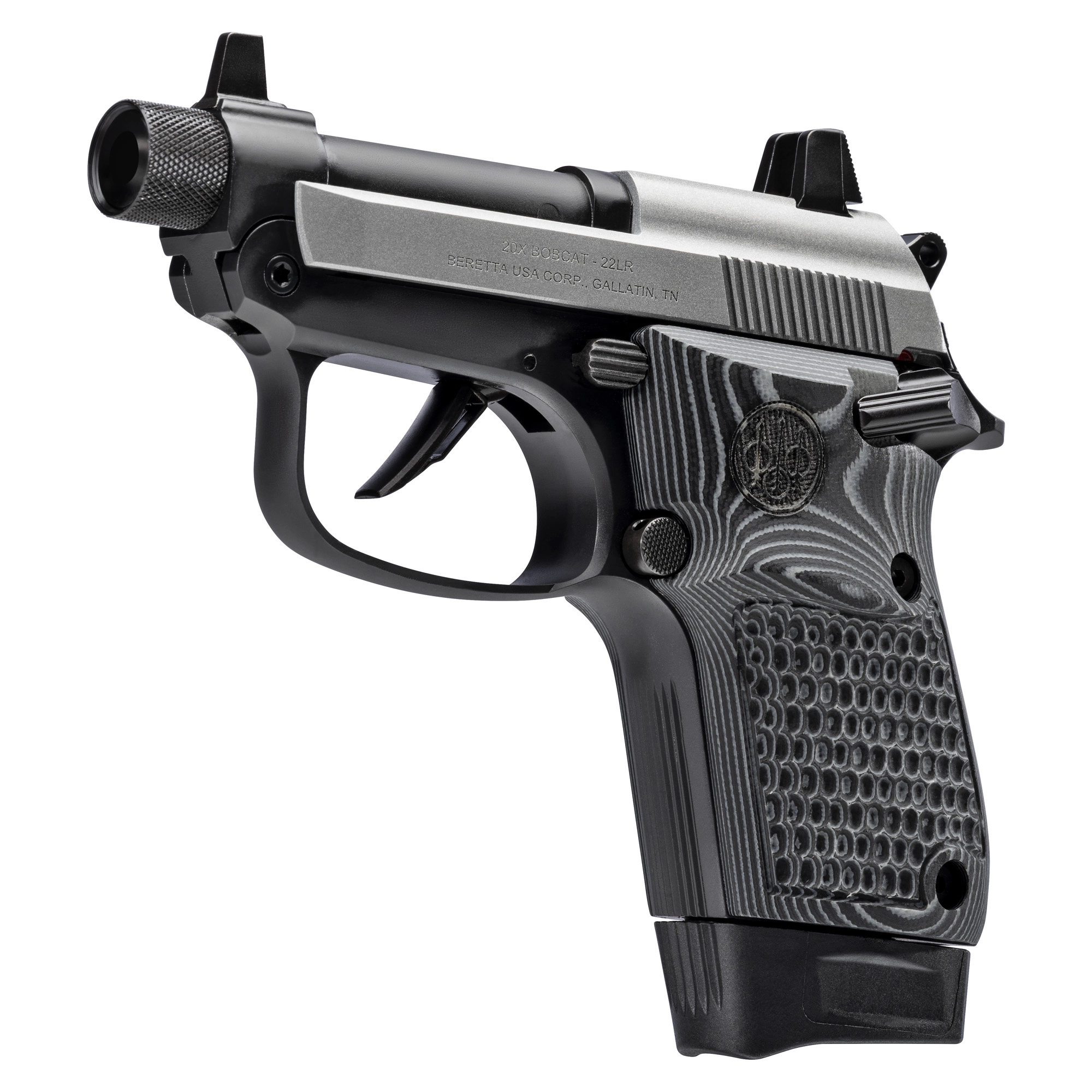 Beretta 20X Bobcat, Bug Out Bag, Semi-automatic, Double Action/Single Action, Metal Frame Pistol, Compact, 22 LR, 2.8″ Threaded Barrel, Matte Finish, Silver Slide, Black Barrel and Frame, Helica Textured Grips, Front White Dot and Blacked-Out Rear Suppressor Height Sights, 8 Rounds, 2 Magazines J20X22R8M3