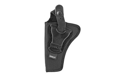This thumbsnap holster is suitable for outdoor and concealment applications. Its trilaminate construction of a closed-cell foam center, poly-knit inner lining and ballistic weave finish offers sturdy protection for the handgun. The holster rides at a 10-13 degree forward angle and the thumb break strap wraps cleanly over hammer. The belt slides through the Quick-Slide 1.75 in. (45 mm) belt loop.