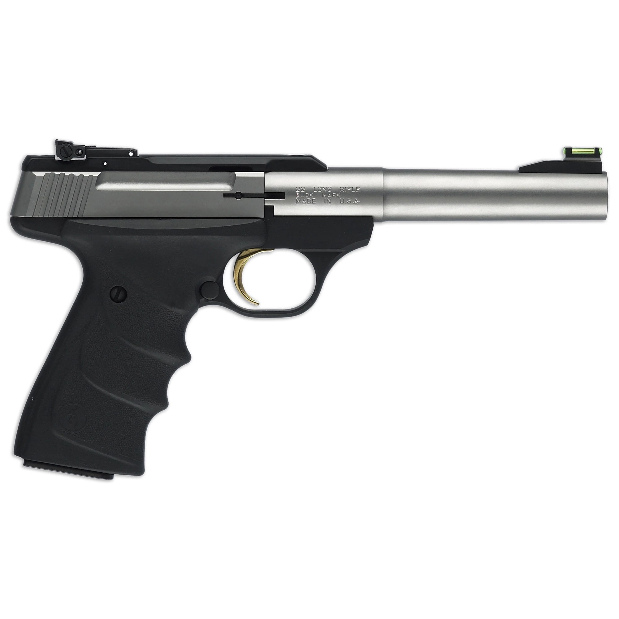 Browning Buck Mark, Camper, Semi-automatic, Metal Frame Pistol, 22LR, 5.5″ Barrel, Aluminum, Stainless Finish, URX Grip, Fiber Optic Front Sight, 10 Rounds, 1 Magazine 051442490 | BRN BM CAMPER STS URX 22LR 5.5″ 10RD – Buck Mark | FrontLine Armoury – Gun shop FL