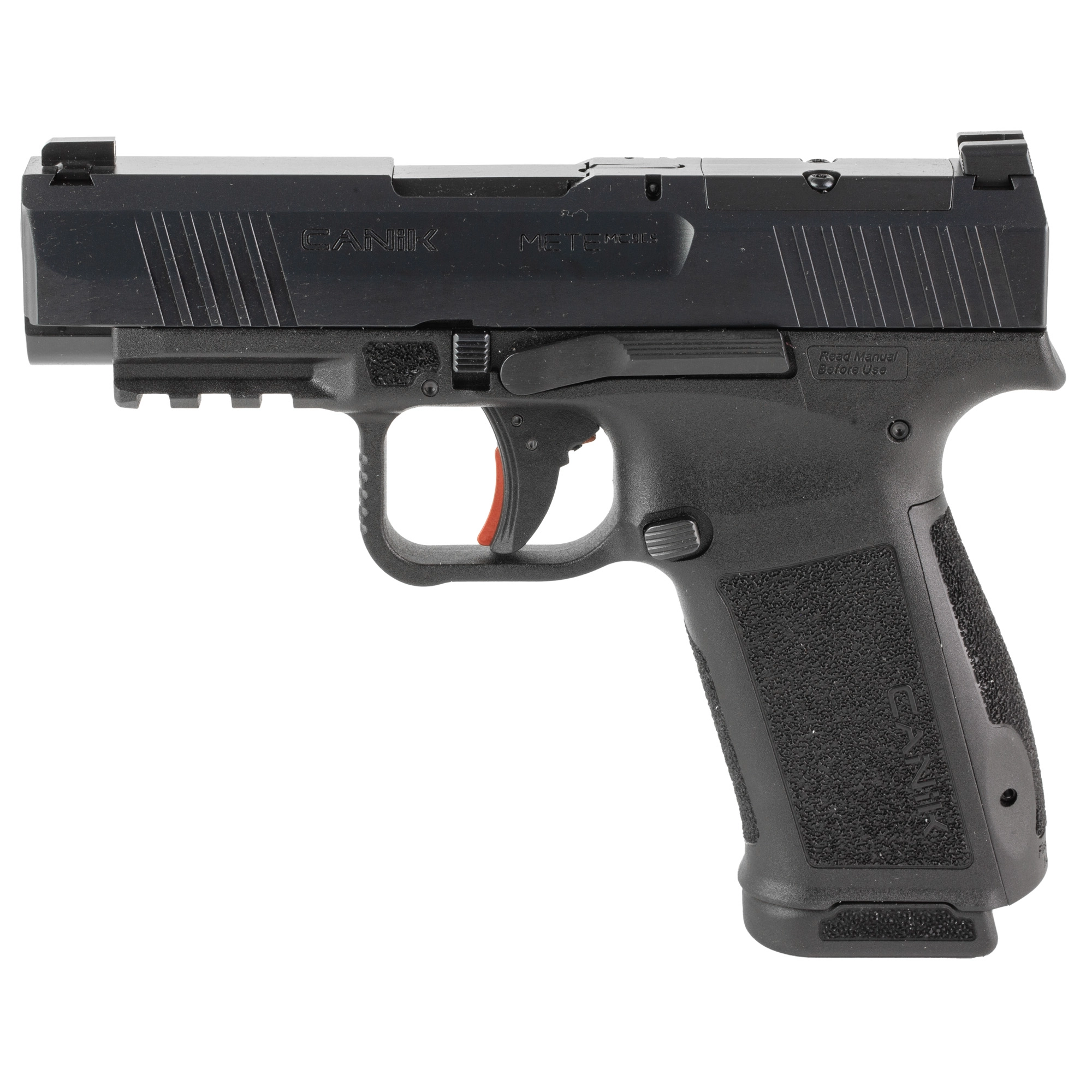 CANIK METE MC9LS, Semi-automatic, Striker Fired, Polymer Frame Pistol, Compact, 9MM, 3.64″ Barrel, Nitride Finish, Black, Optic Ready, White Dot Front Sight, Blackout Rear Sight, 2 Magazines, 17 Rounds, Includes MeCANiK MO1 Red Dot Optic HG7883V-N
