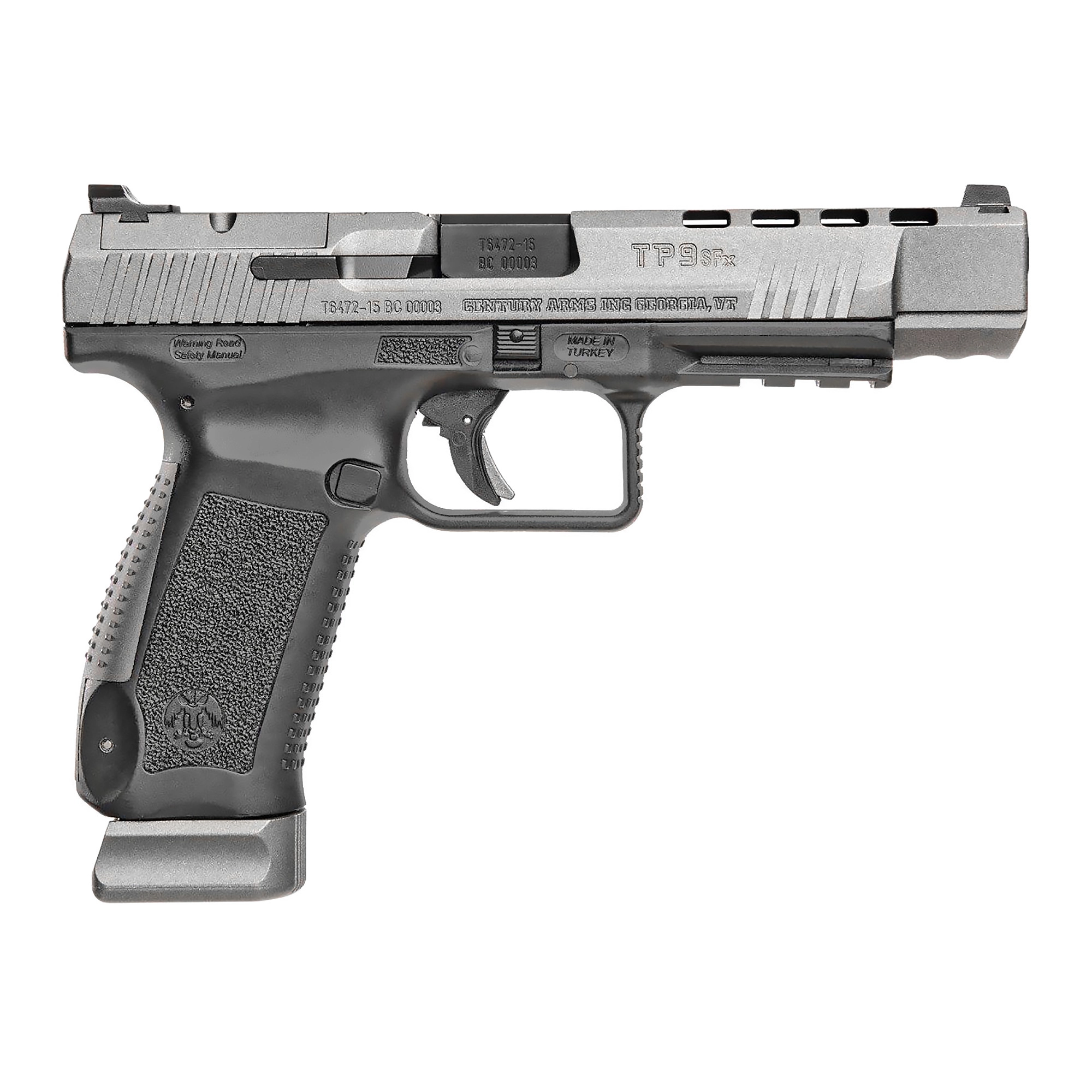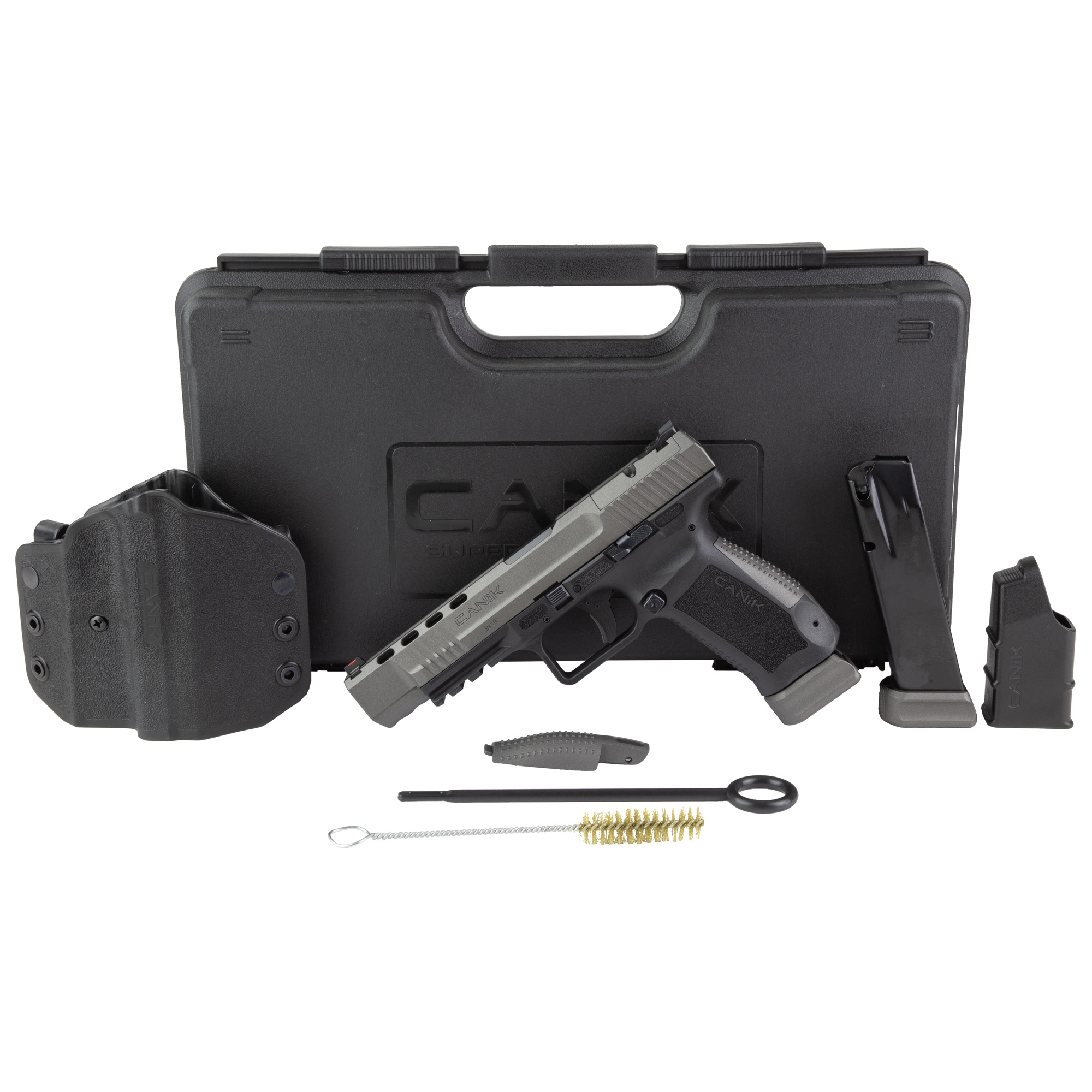 CANIK TP9SFx, Striker Fired, Semi-automatic, Polymer Frame Pistol, 9MM, 5.2″ Match Grade Barrel, Tungsten Grey, Warren Tactical Sights, 20 Rounds, 2 Magazines, Holster, Interchangeable Backstraps, Four Red Dot Interface Plates HG3774G-N