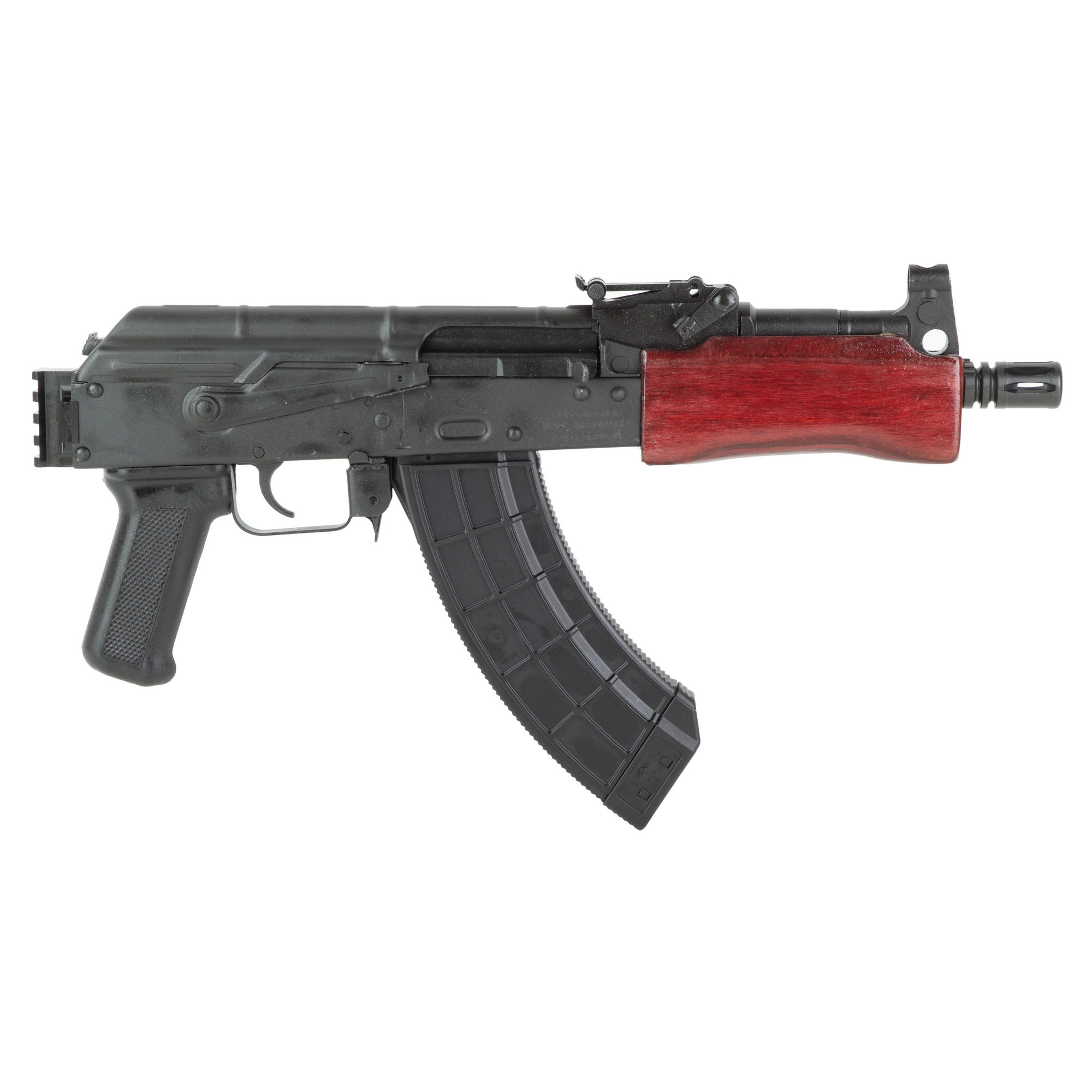 Century Arms Mini Draco, Semi-automatic Pistol, 7.62X39, 7.75″ Threaded Barrel, Russian Red Wood Handguards, Rear 1913 Picatinny Rail, Matte Finish, Black, 30 Rounds, 1 Magazine HG2137PR-N
