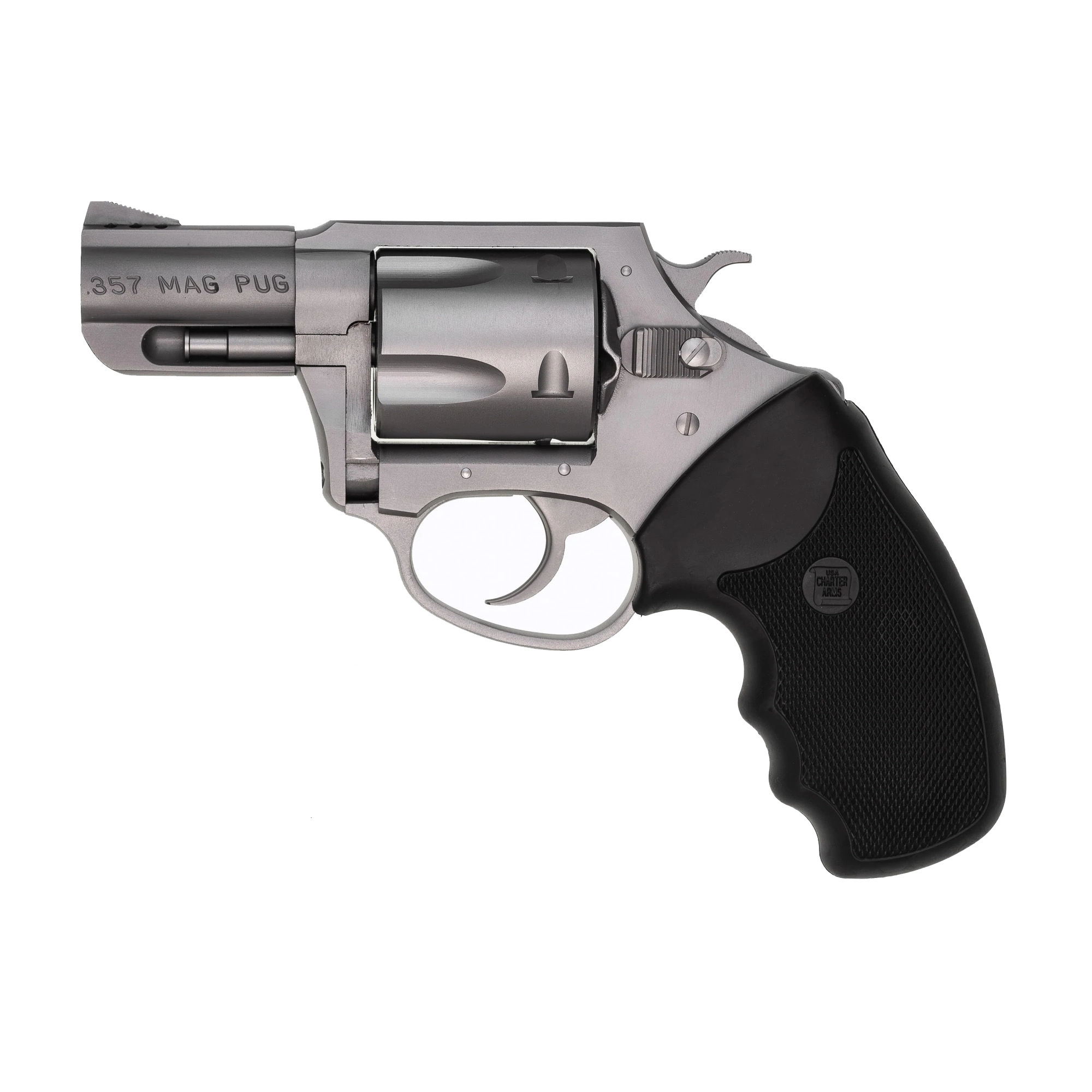 Charter Arms Mag Pug, Revolver, 357 Magnum, 2.2″ Ported Barrel, Steel, Stainless Finish, Silver, Rubber Grips, Fixed Sights, 5 Rounds 73520 | CHARTER ARMS MAGPUG 357 2.2″ 5RD SS – Mag Pug | FrontLine Armoury – Gun shop FL