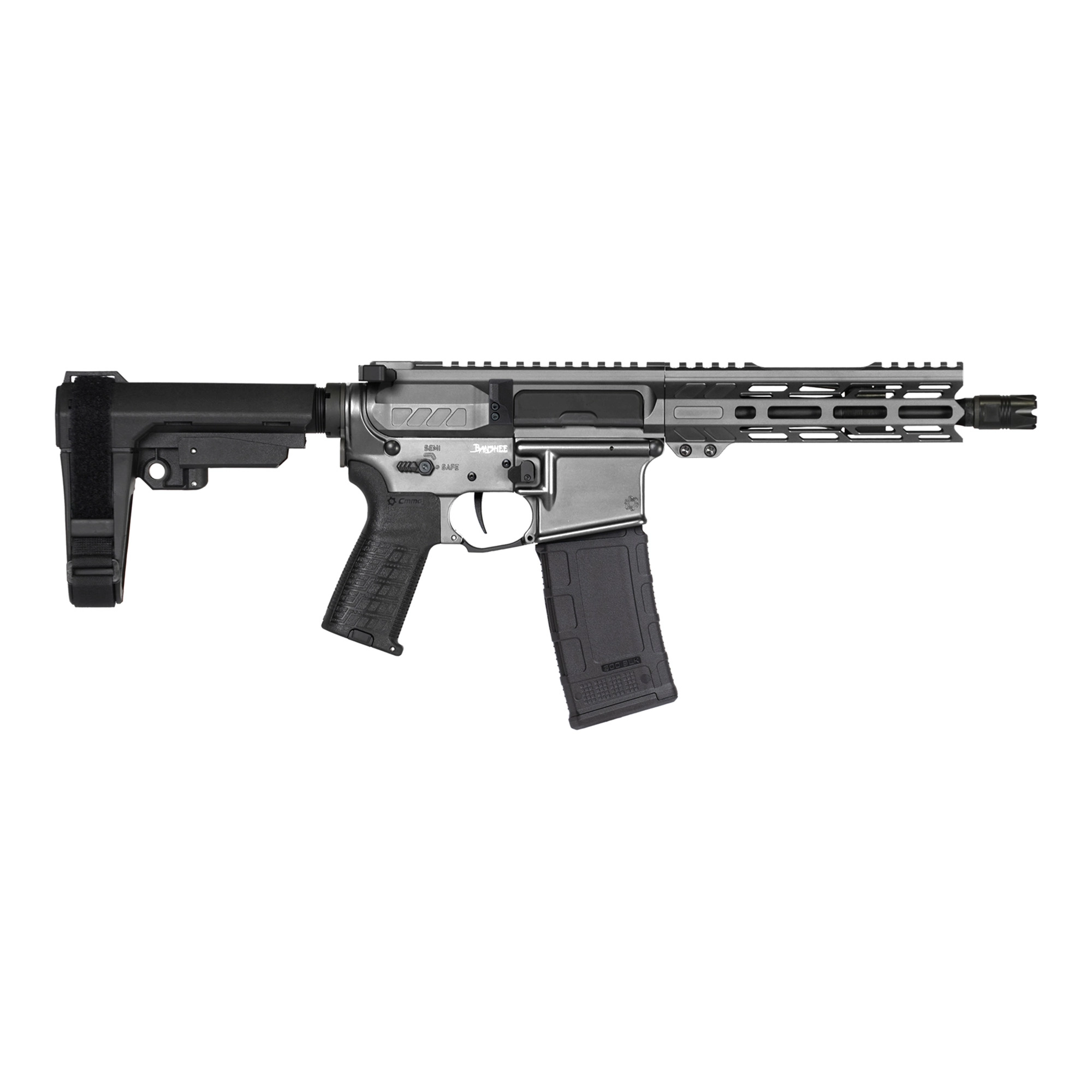 CMMG Banshee MK4, Semi-automatic, AR Pistol, 300 Blackout, 8″ Barrel, 5/8X24 Thread Pitch, Cerakote Finish, Tungsten, CMMG Pistol Grip, Pistol Stabilizing Brace, Ambidextrous Controls, 30 Rounds, 1 Magazine 30AF20A-TNG