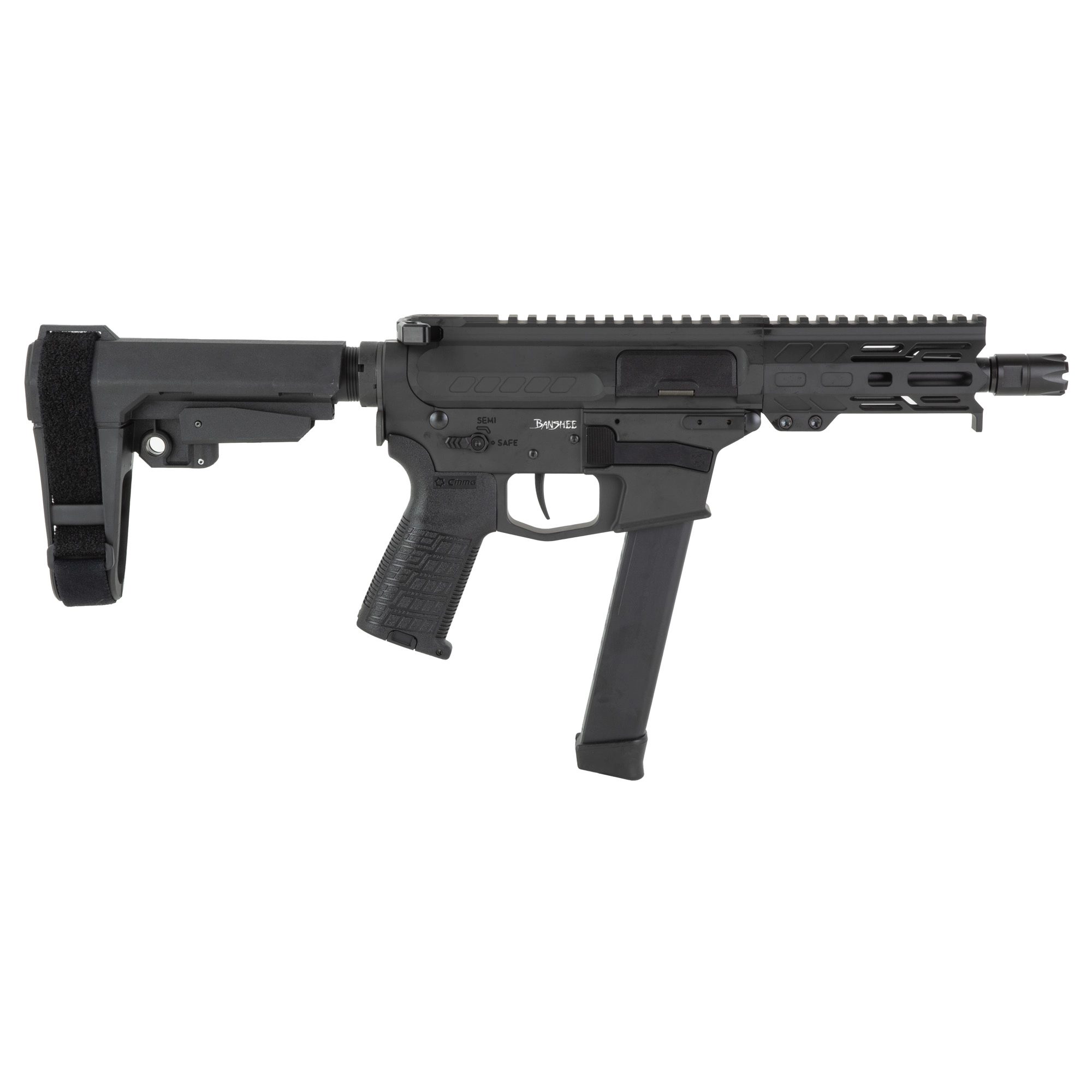 CMMG Banshee MKGs, Semi-automatic, AR Pistol, 9MM, 5″ Barrel, 1/2X28 Thread Pitch, Cerakote Finish, Armor Black, CMMG Pistol Grip, Pistol Stabilizing Brace, Ambidextrous Controls, 33 Rounds, 1 Magazine 99A290F-AB
