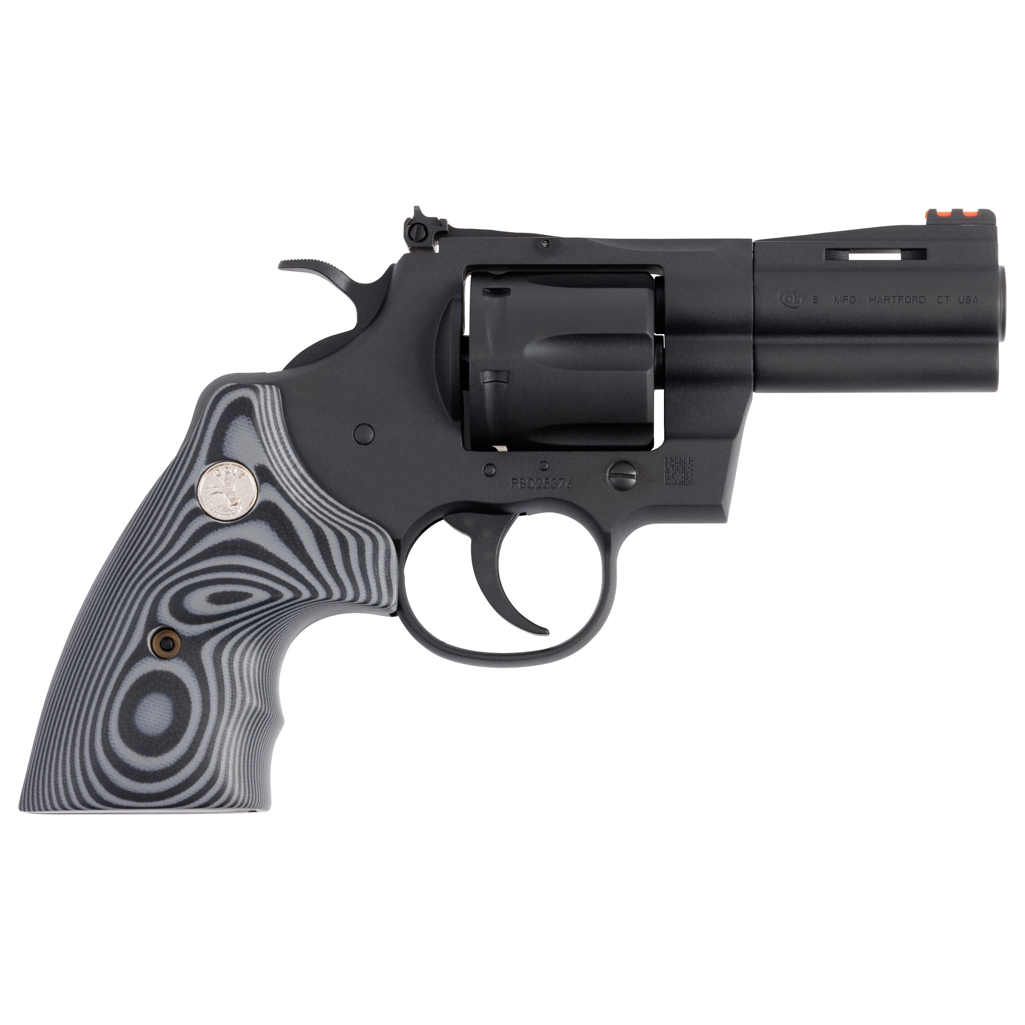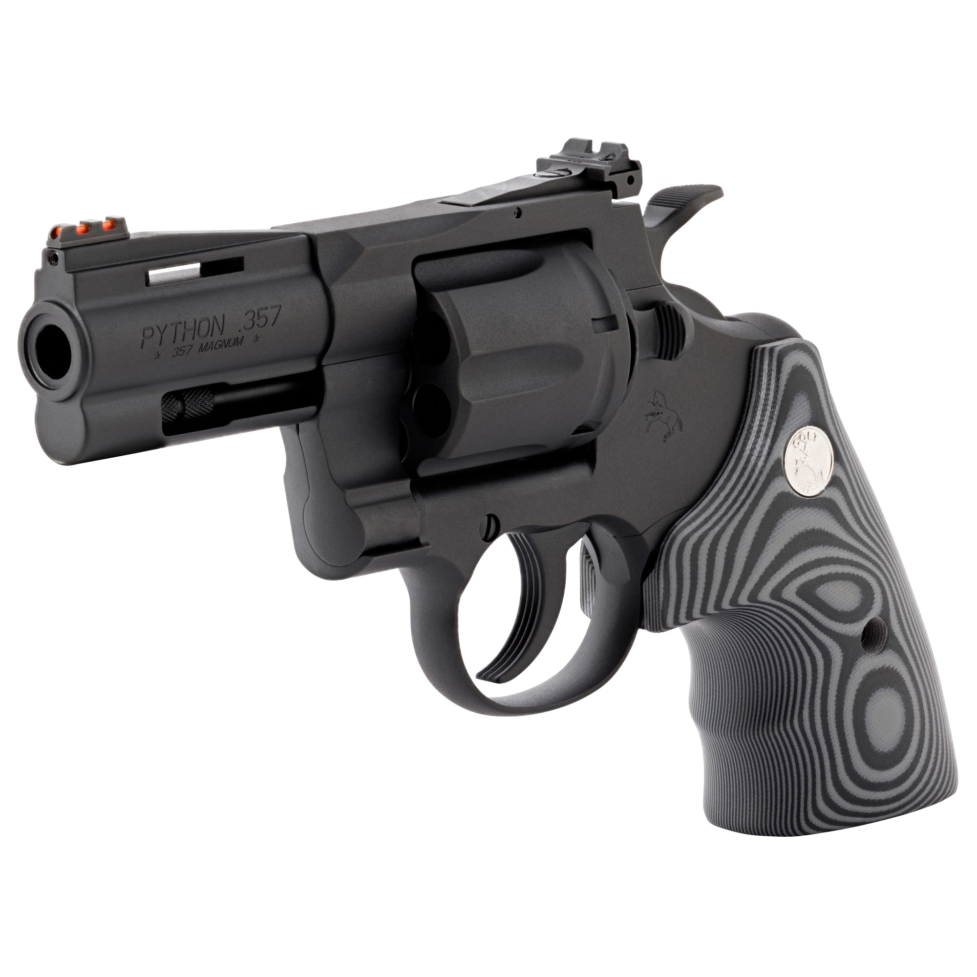 Colt’s Manufacturing Python, Revolver, Double Action/Single Action, 357 Magnum, 3″ Barrel, Matte Blued Finish, Black, G10 Black Grips, Adjustable Rear Sight, Red Fiber Optic Front Sight, 6 Rounds PYTHON-BM3FO