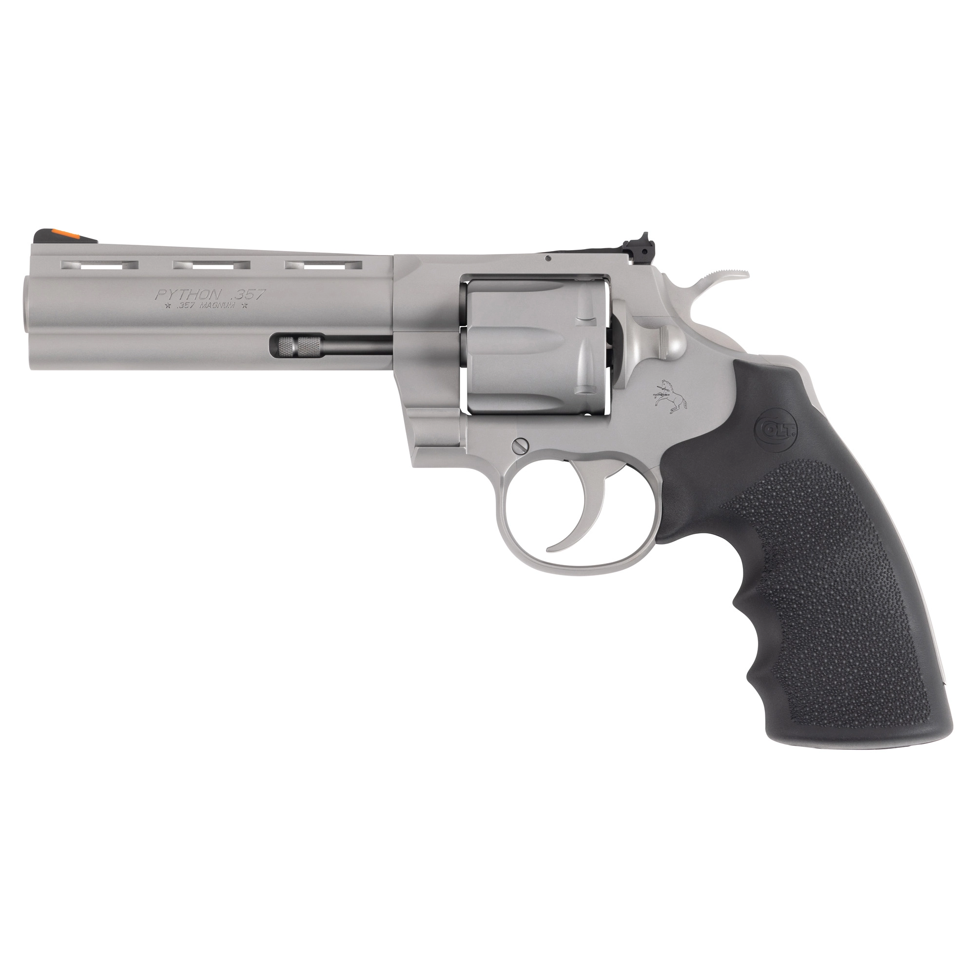 Colt’s Manufacturing Python, Revolver, 357 Magnum, 5″ Barrel, Matte Stainless Steel Finish, Hogue Rubber Grip, Adjustable Rear Sight, Red Ramp Front Sight, 6 Rounds PYTHON-SM5RTS | COLT PYTHON 357MAG 5″ MATTE STS – Python | FrontLine Armoury – Gun shop FL