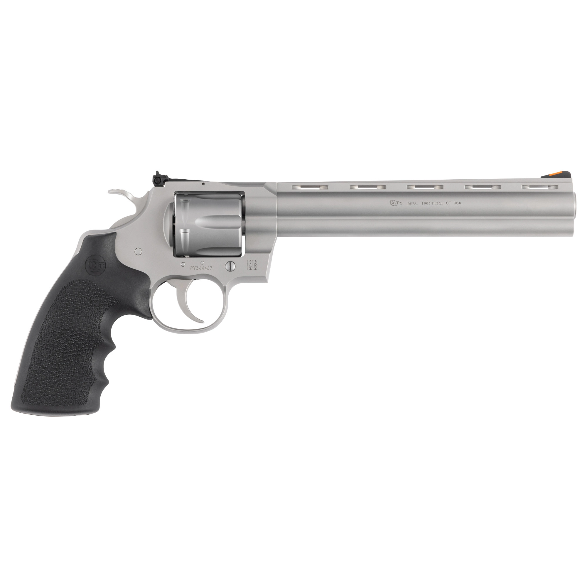 Colt’s Manufacturing Python, Revolver, Double/Single Action, 357 Magnum, 8″ Barrel, Matte Stainless Steel Finish, Hogue Rubber Grip, Adjustable Rear Sight, Red Ramp Front Sight, 6 Rounds PYTHON-SM8RTS | COLT PYTHON 357MAG 8″ MATTE STS – Python | FrontLine Armoury – Gun shop FL