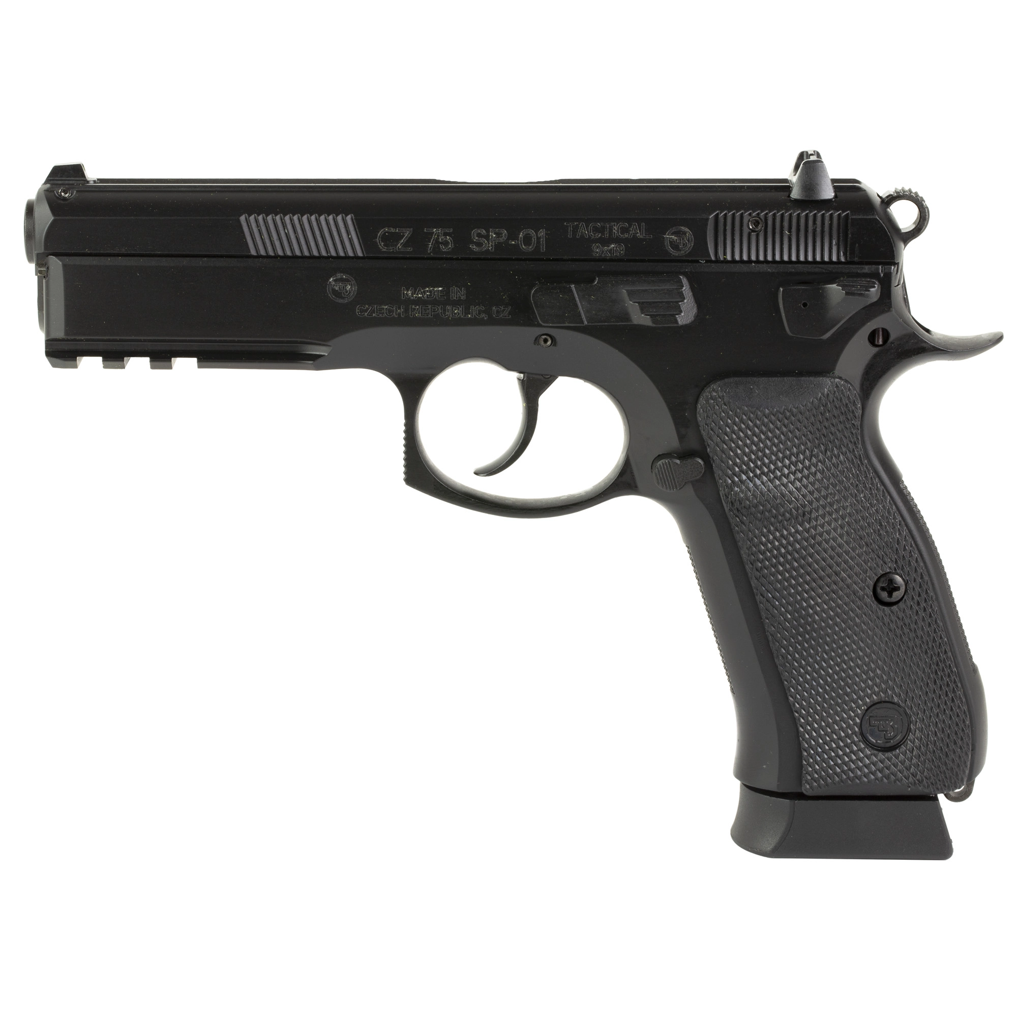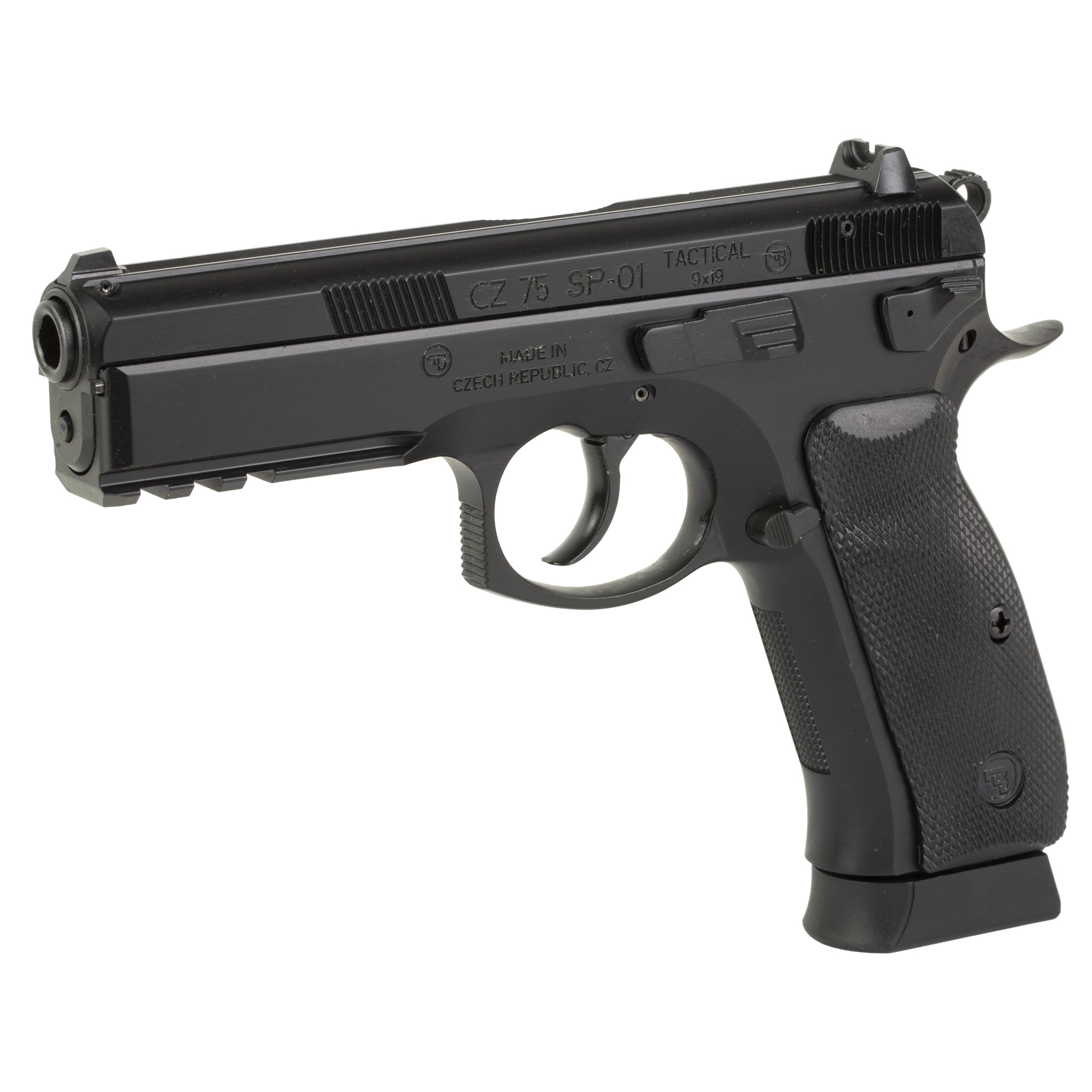 CZ 75 SP-01 Tactical, Semi-Automatic, DA/SA, Full Size, 9MM, 4.6″ Cold Hammer Forged Barrel, Steel Frame, Black Finish, Rubber Grips, Luminescent 3 Dot Sights, Decocker, 2 Magazines, 19 Rounds 89353 | CZ 75 SP-01 TAC 9MM 4.6″ BLK 19RD – SP-01 | FrontLine Armoury – Gun shop FL