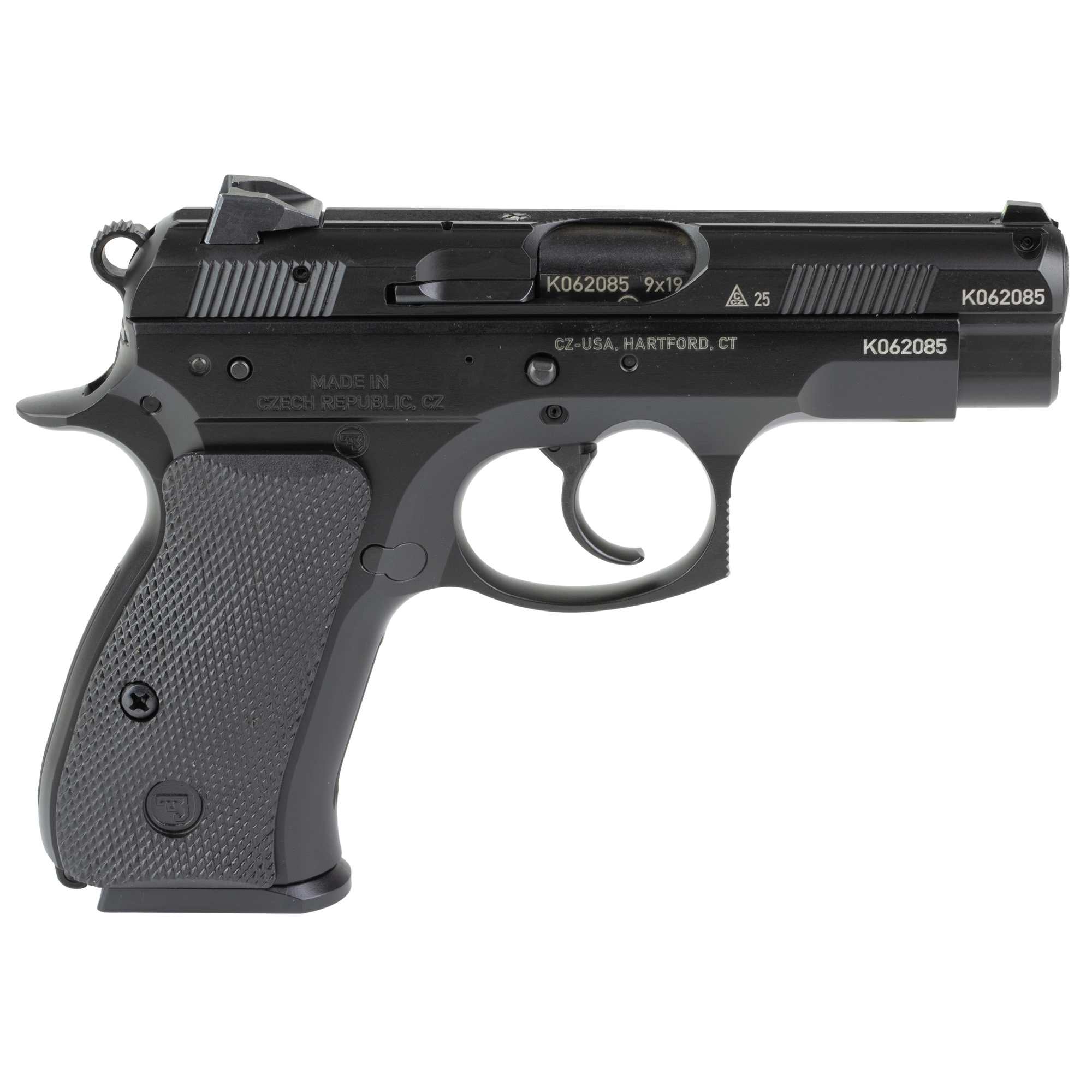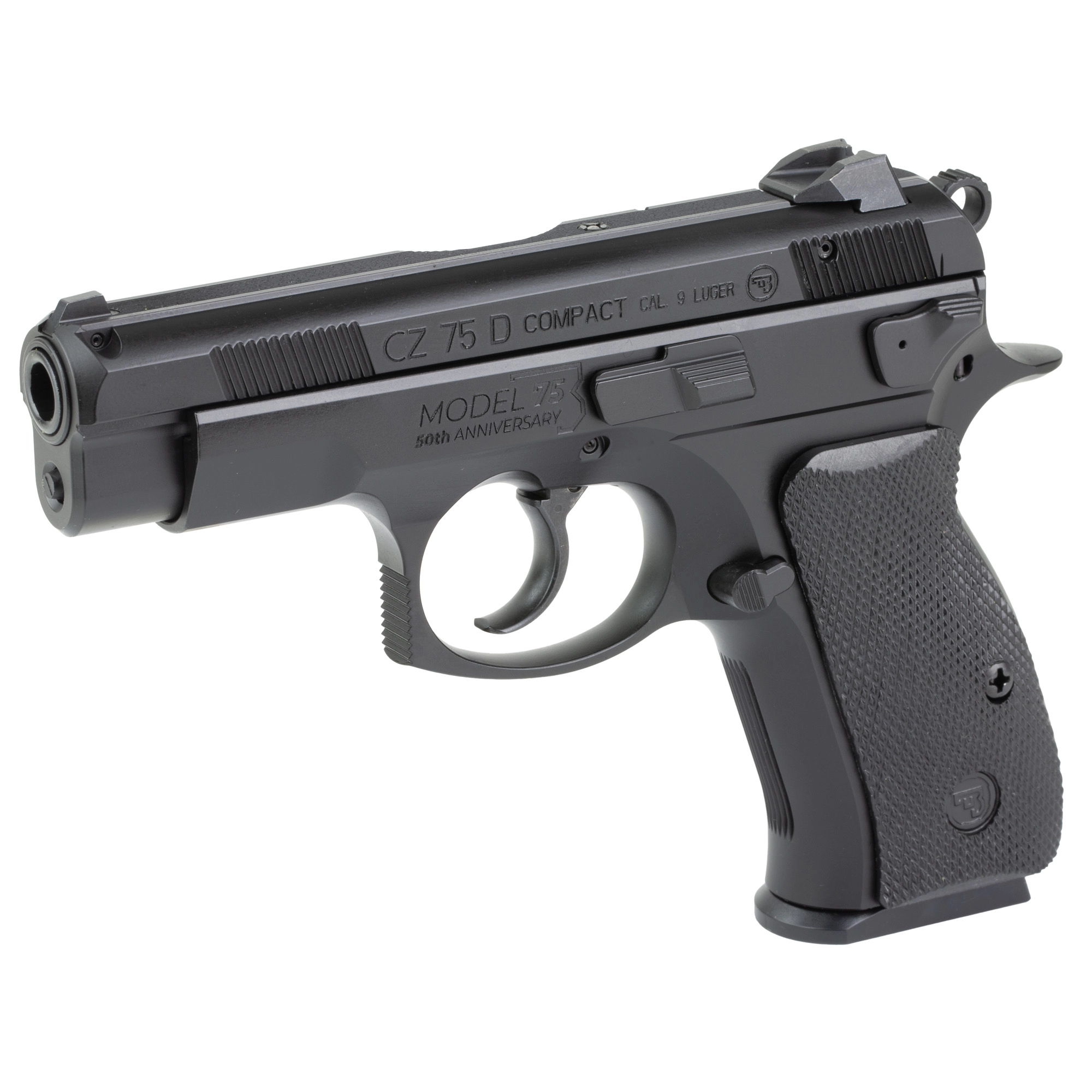 CZ 75D PCR 50th Anniversary Elite, Double Action/Single Action, Semi-automatic, Metal Frame Pistol, Compact, 9MM, 3.75″ Cold Hammer Forged Barrel, Aluminum, Polycoat Finish, Black, Decocker, Rubber Grips, Fixed Snag-free Sights, 10 Rounds, 2 Magazines 01209