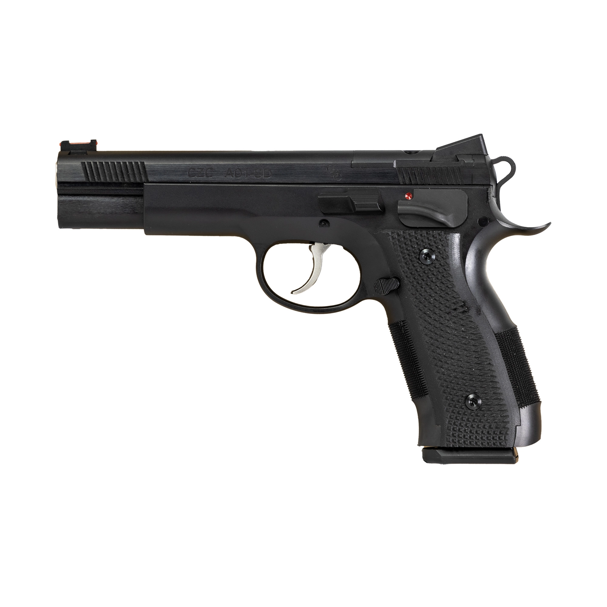 CZ AO1-SD, Optics Ready, Double Action/Single Action, Semi-automatic, Metal Frame Pistol, Full Size, 9MM, 4.9″ Match Grade Bull Barrel, Blued Finish, Black, Optics Ready with Leupold DPP and Trijicon RMR Plate, Manual Safety, Fiber Optic Front Sight, 19 Rounds, 2 Magazines 91732