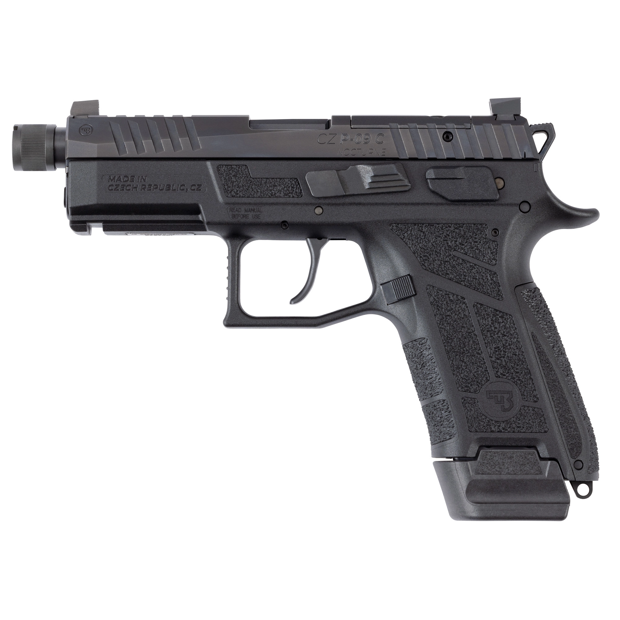 CZ P-09C Nocturne, Semi-automatic, Double Action/Single Action, Polymer Frame Pistol, Compact, 9MM, 4.5″ Threaded Barrel, Matte Finish, Black, Optics Ready, Contrast Luminescent 3 Dot Sights, Manual Safety with Interchangeable Decocker, 17 Rounds, 2 Magazines 91661