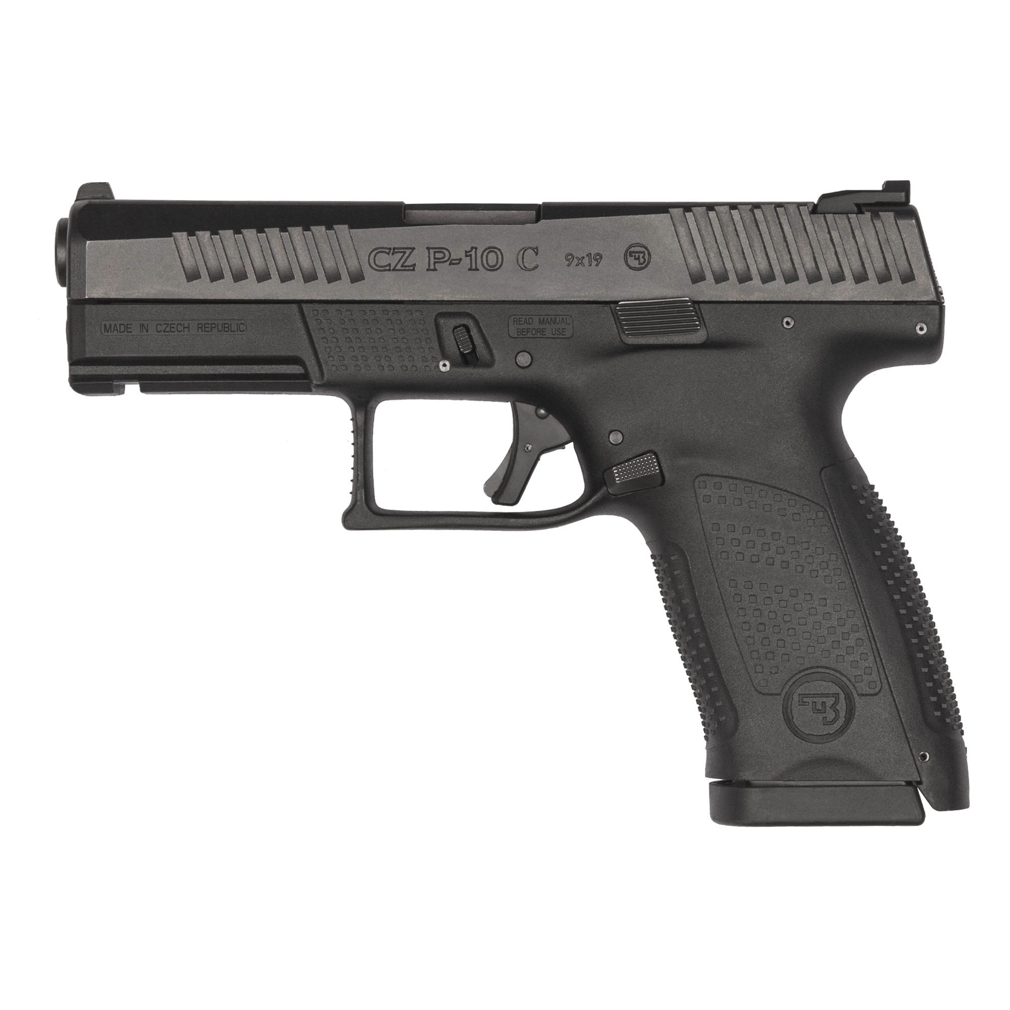 CZ CZ, P-10C, Semi-automatic, Striker Fired, Compact, 9MM, 4.02″ Barrel, Nitride Finish, Black, Polymer Frame, Ambidextrous, Trigger Safety, Fixed Sights, Optic Ready, 15 Rounds, 2 Magazines 91536