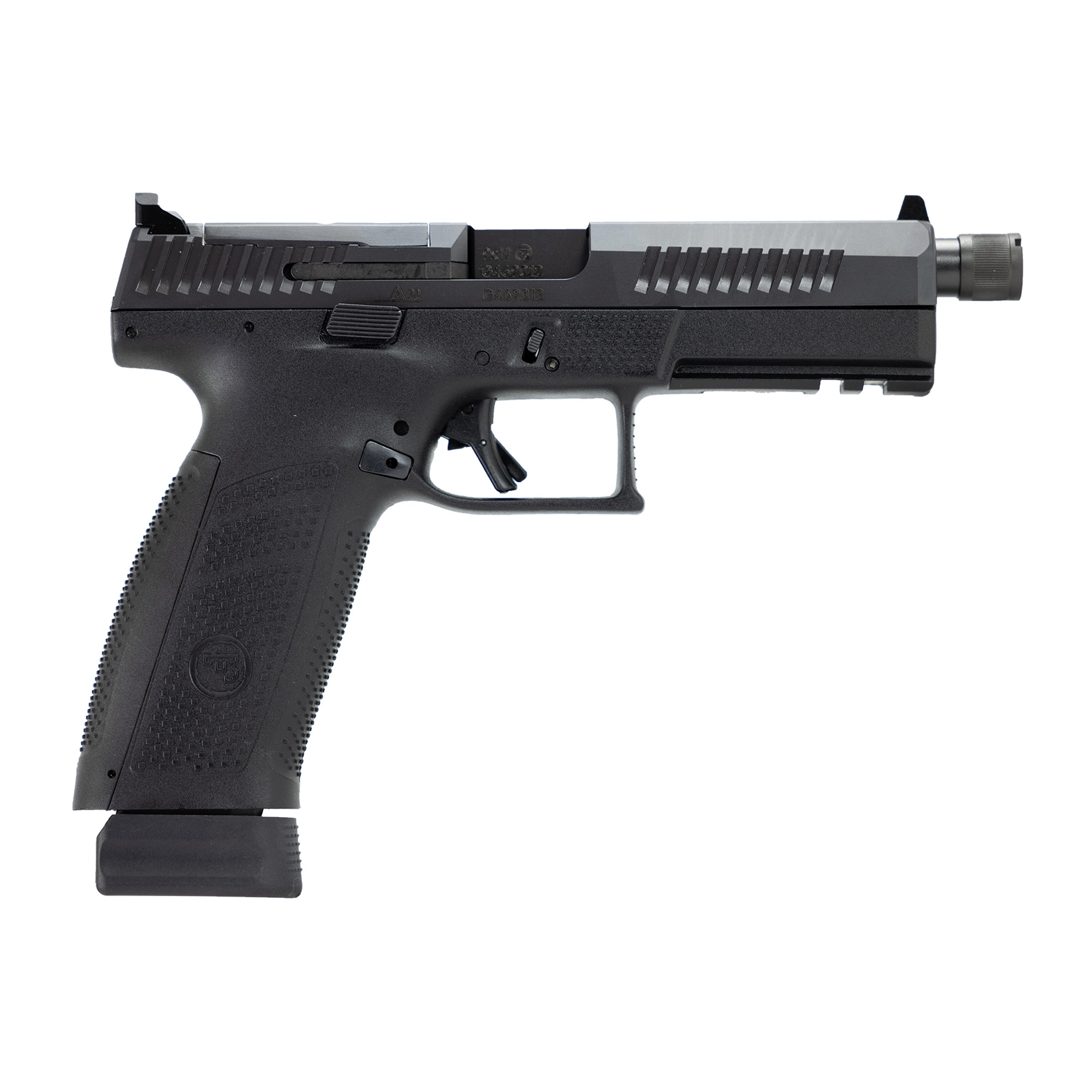 CZ P-10 F Suppressor and Optic Ready, Striker Fired, Semi-automatic, Polymer Frame Pistol, Compact, 9MM, 5.1″ Threaded Barrel, 1/2X28, Nitride Slide Finish, Black, 3 Interchangeable Backstraps, High Fixed Sights, Optic Ready, Integrated Trigger Safety, 21 Rounds, 2 Magazines 91556