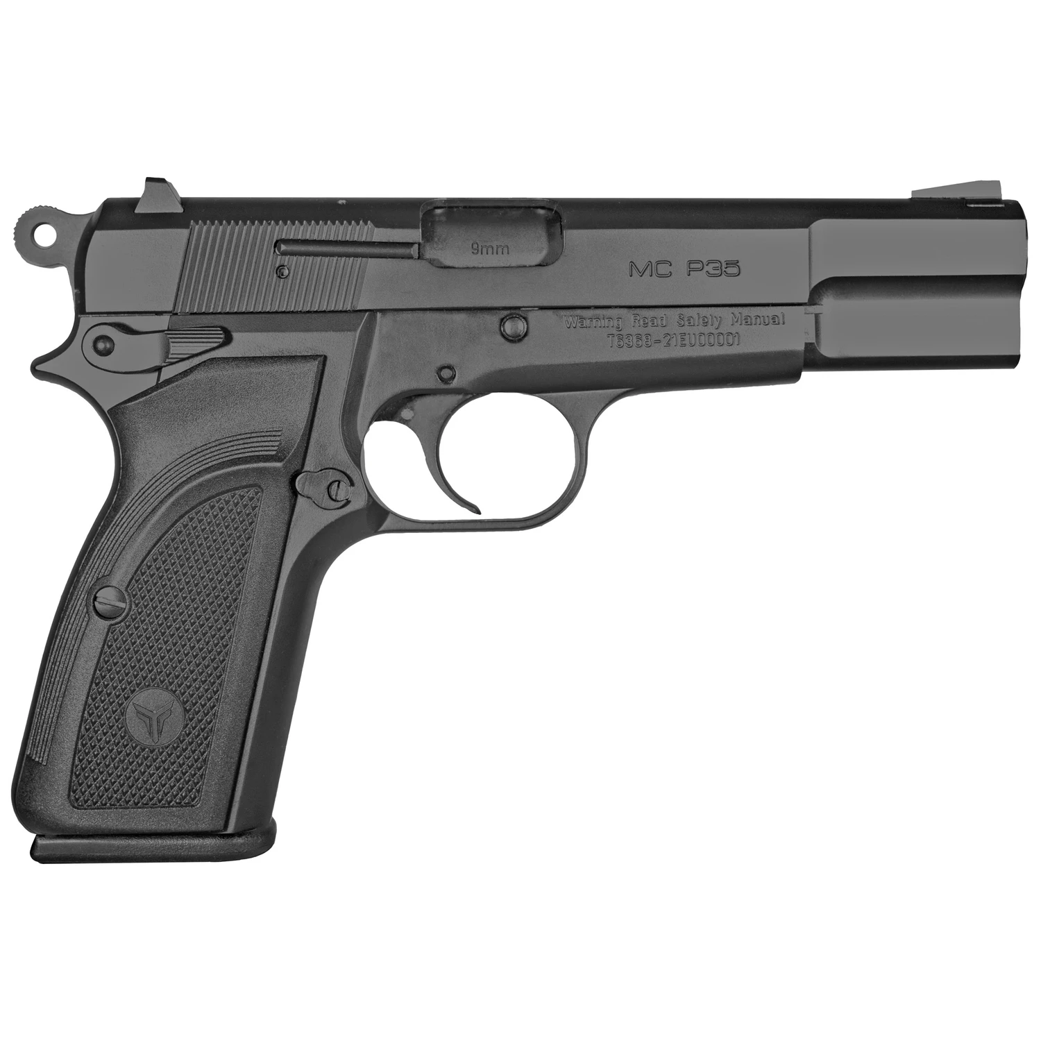 Girsan MCP35, Semi-automatic, Single Action Only, Full Size, 9MM, 4.87″ Barrel, Steel Framed Pistol, Blued Finish, Synthetic Grips, Ambidextrous Safety, Dovetail Front/Rear Adjustable Sights, 15 Rounds, 1 Magazine 390450