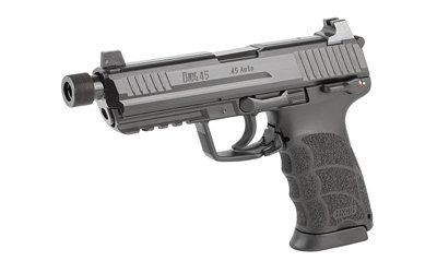 Originally developed as part of the U.S. military’s Joint Combat Pistol program in 2005-6, the HK45 Tactical model is the threaded barrel version of the HK45. It comes standard with a threaded barrel and adjustable Truglo high-profile sights, which are suitable for use with or without suppressors. The sights are made exclusively for HK. The full-size HK45 Tactical (HK45T) features an ergonomic grip design with changeable backstraps and molded finger grooves that naturally position the user’s hand for optimal shooting. All HK45 pistol series models- compact, full-size, and Tactical- are manufactured at HK’s American facility in Columbus, Georgia, using American and German components.