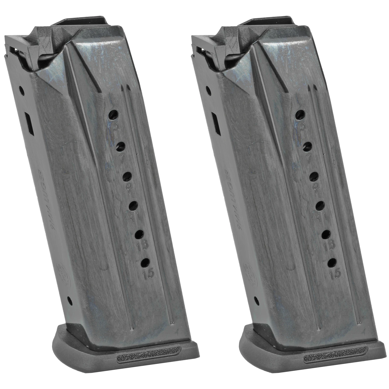 Ruger Magazines, 9MM, 15 Rounds, Fits Ruger Security-9, Steel, Black, 2 Pack 90684