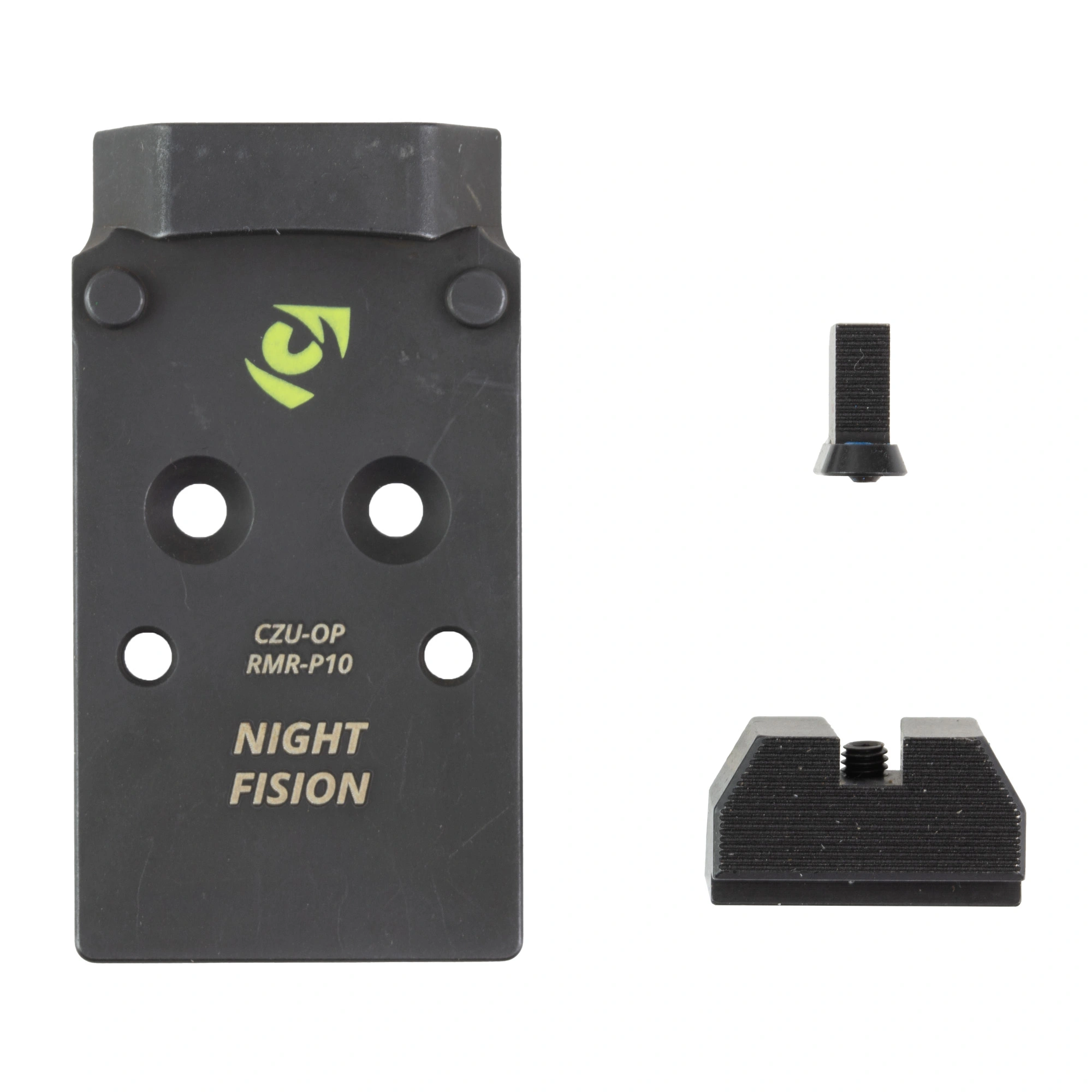 Night Fision Optic Plate + Backup Sight Combo, Black Sights, Trijicon RMR/Holosun 507C Optic Plate, Fits Optic Ready CZ P10 CZU-OPBS-RMR-P10-ZXZX