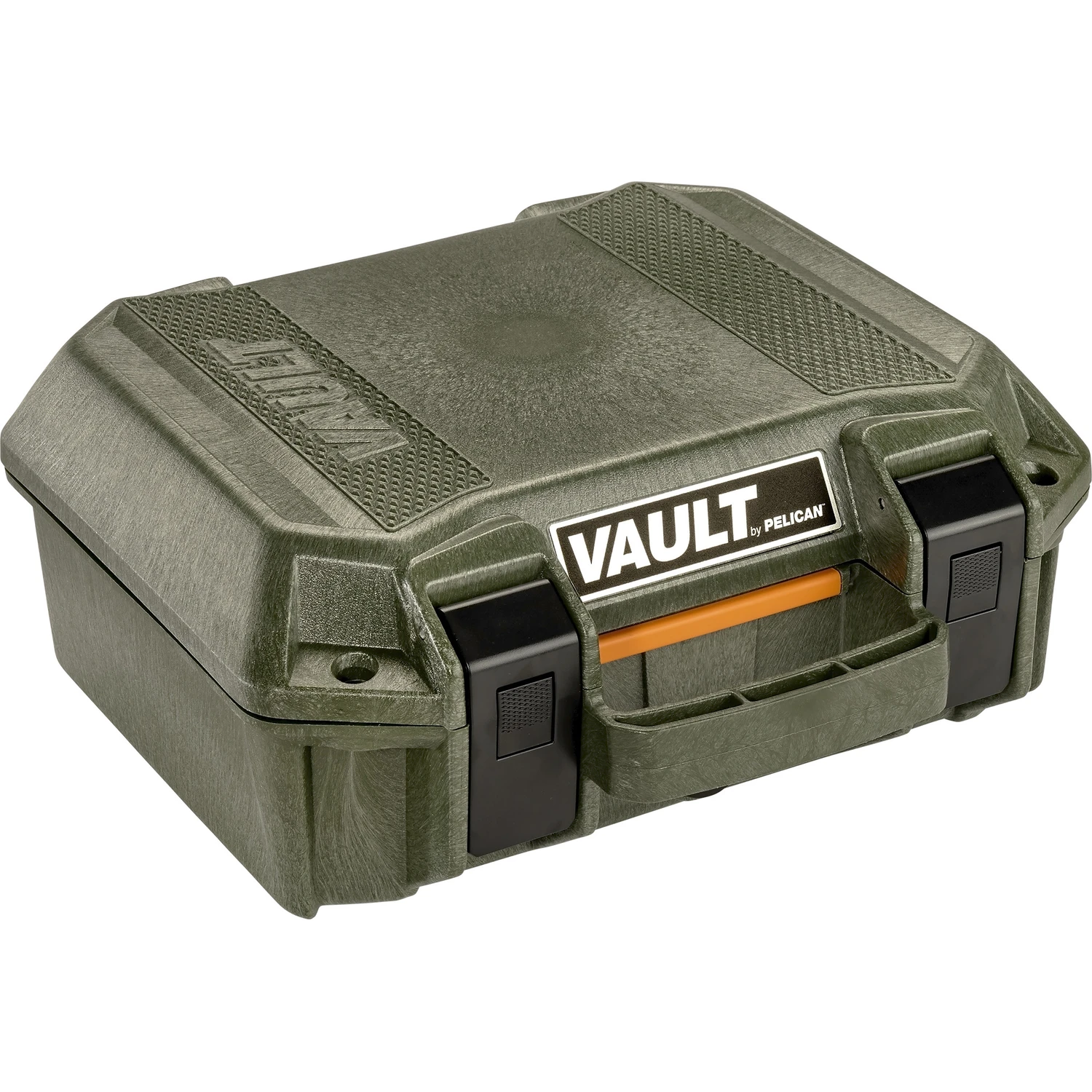 Pelican V100C, Vault Small Handgun Case, With Foam, Olive Drab Green, 12.28″ x 12.03″ x 5.16″ VCV100-0020-ODG | PELICAN V100C VAULT CASE WL/WF ODG – Vault | FrontLine Armoury – Gun shop FL