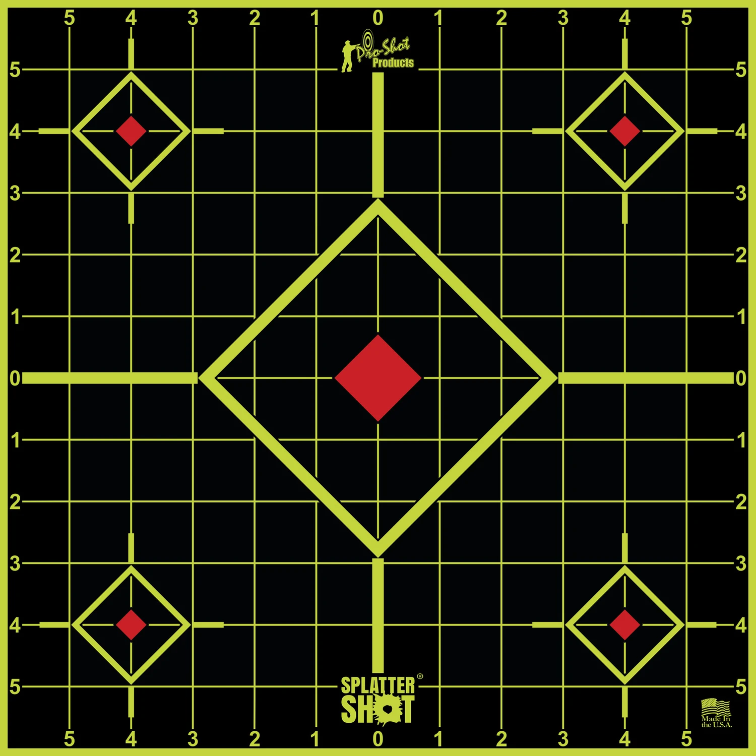 Pro-Shot Products Splatter Shot, 12″ Sight-In, Adhesive Target, 5 Pack, Black/Green 12SI-GREEN-5PK | PRO-SHOT TARGET 12″ GRN SIGHT-IN 5PK – Splatter Shot | FrontLine Armoury – Gun shop FL