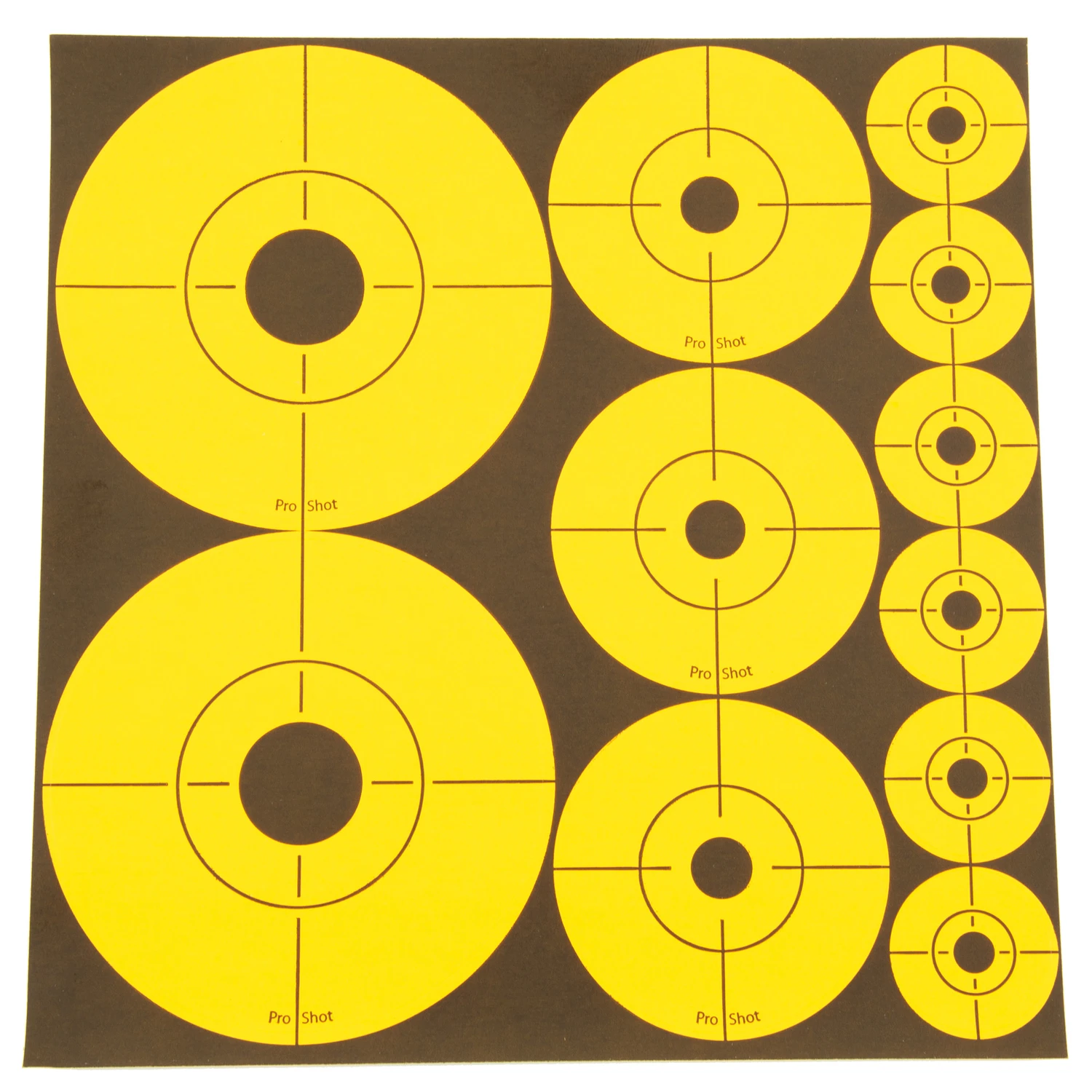 Pro-Shot Products Bullseye Target, Assorted 1″/2″/3″ Bullseyes, 10 Sheets, Orange/Black ASSORTED-DOT